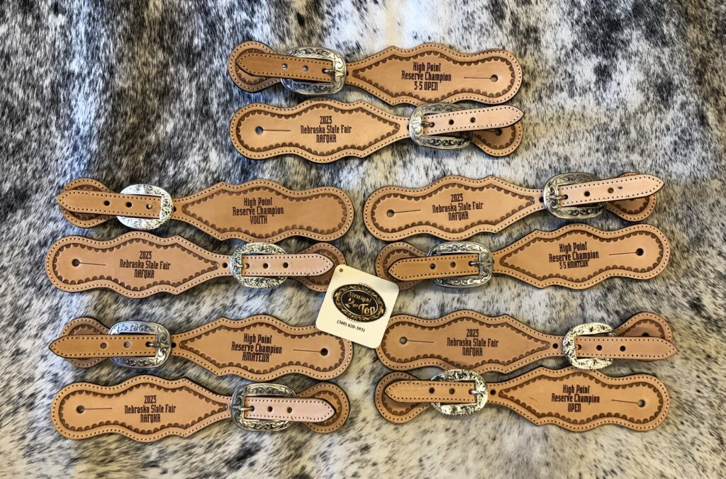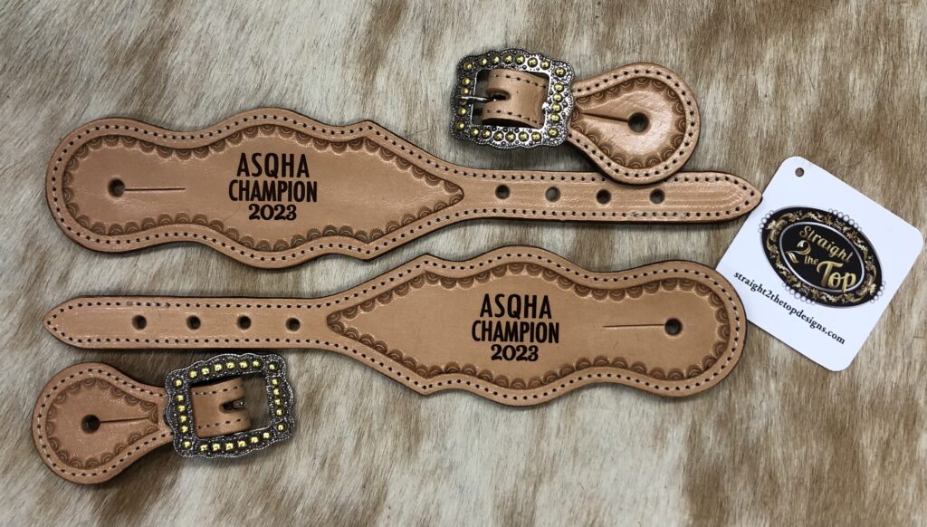 Ride in style with personalized spur straps. Hand-tooled and built to last, these straps are the perfect addition to your show gear or everyday riding tack.